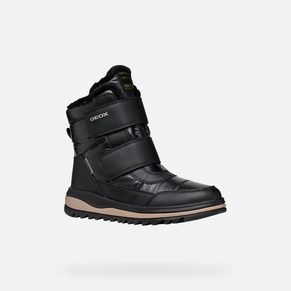 Bottines pour fille chaudes et imperméables, parfaites pour les journées les plus froides. Proposées ici en noir, les Adelhide ABX sont idéales associées aux tenues les plus sportives. Réalisées en nylon nacré et matière à effet cuir, ces chaussures sont faciles à ajuster et garantissent confort et protection, même en cas de mauvais temps.
