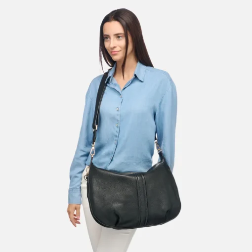 Sac à l’épaule pour femme à l’ADN quotidien et à l’allure dynamique, parfait compagnon citadin. Indispensable dans la garde-robe décontractée chic, ce modèle est réalisé en cuir foulonné et est proposé ici dans une version noire sobre et polyvalente. Grâce à sa bandoulière amovible pratique, le sac Aurelyi se transforme en sac à bandoulière spacieux et fonctionnel, idéal pour se promener les mains libres.Modèle se portant à la main, à l’épaule ou en bandoulière.Fermeture éclair en métal.Anse amovible.Bandoulière amovible incluse à l’intérieur.Deux poches intérieures.Porte-clés amovible avec plaquette en cuir.Accessoires métalliques à finition or.Dimensions : L 44 cm x l 2 cm x H 32,5 cm.