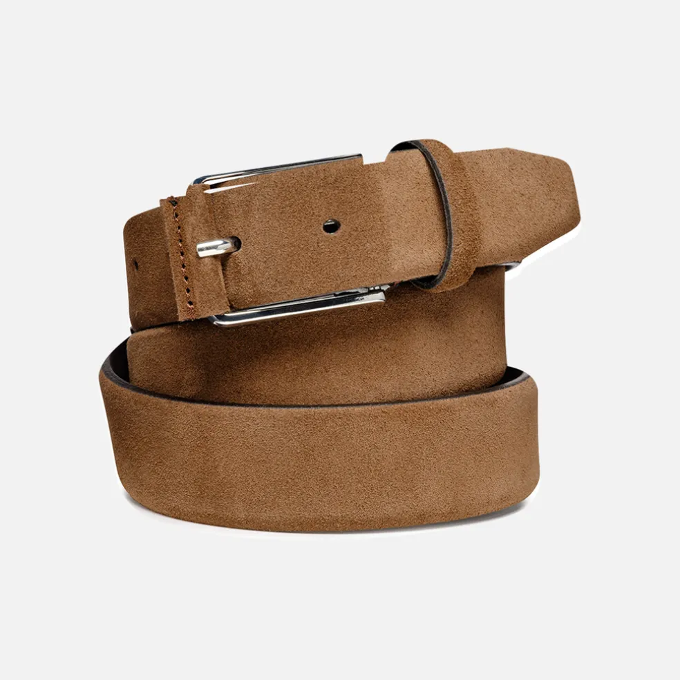 Ceinture pour homme au design classique et au style raffiné, idéale pour renouveler la garde-robe quotidienne. Réalisée en cuir velours et dotée d’une boucle en métal partiellement recouverte, cette ceinture est proposée dans une sobre version marron foncé. Cet accessoire résolument polyvalent est pensé pour compléter les tenues citadines plus ou moins formelles avec une touche spéciale.Accessoires métalliques à finition argent.Largeur : 3,5 cm