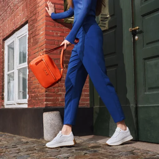 Sac à bandoulière pour femme, compact mais spacieux, parfait aussi bien pour la ville que pour les excursions extra-urbaines. Caractérisé par un design épuré et soigné dans les moindres détails, ce modèle est réalisé en cuir foulonné souple et proposé ici dans une tonalité orange qui sort du lot. Doté d’une bandoulière réglable et de deux poches extérieures pratiques, le modèle Blandine est un sac à bandoulière pratique pensé pour répondre aux exigences de la vie moderne.Modèle se portant en bandoulière.Fermeture éclair en métal.Bandoulière réglable.Poches avant et arrière avec fermeture éclair en métal.Deux poches intérieures dont une à fermeture éclair.Accessoires métalliques à finition or.Dimensions : L 25 cm x l 8 cm x H 16 cm.