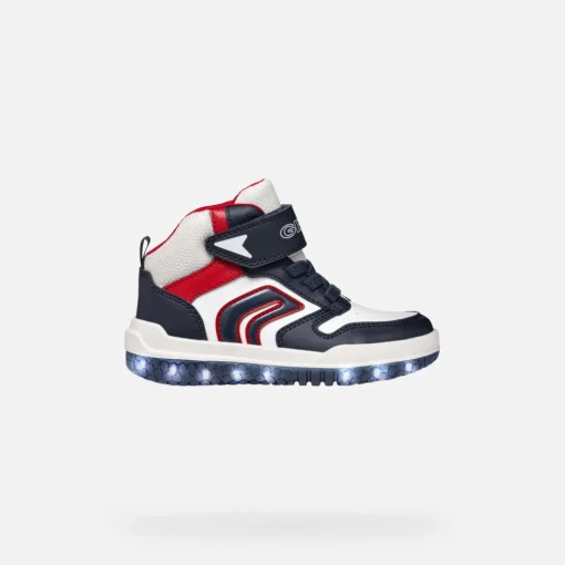Sneakers semi-montantes pour garçon au design d’inspiration basket, respirantes et confortables. Déclinées ici dans un mélange de bleu marine et blanc, les Buzzerlight arborent une tige rehaussée par des applications dynamiques qui confèrent une touche moderne aux looks les plus sportifs. Réalisées en matière à effet cuir et tissu, ces chaussures sont dotées de lumières intégrées dans la semelle extérieure, gage de divertissement à chaque pas.