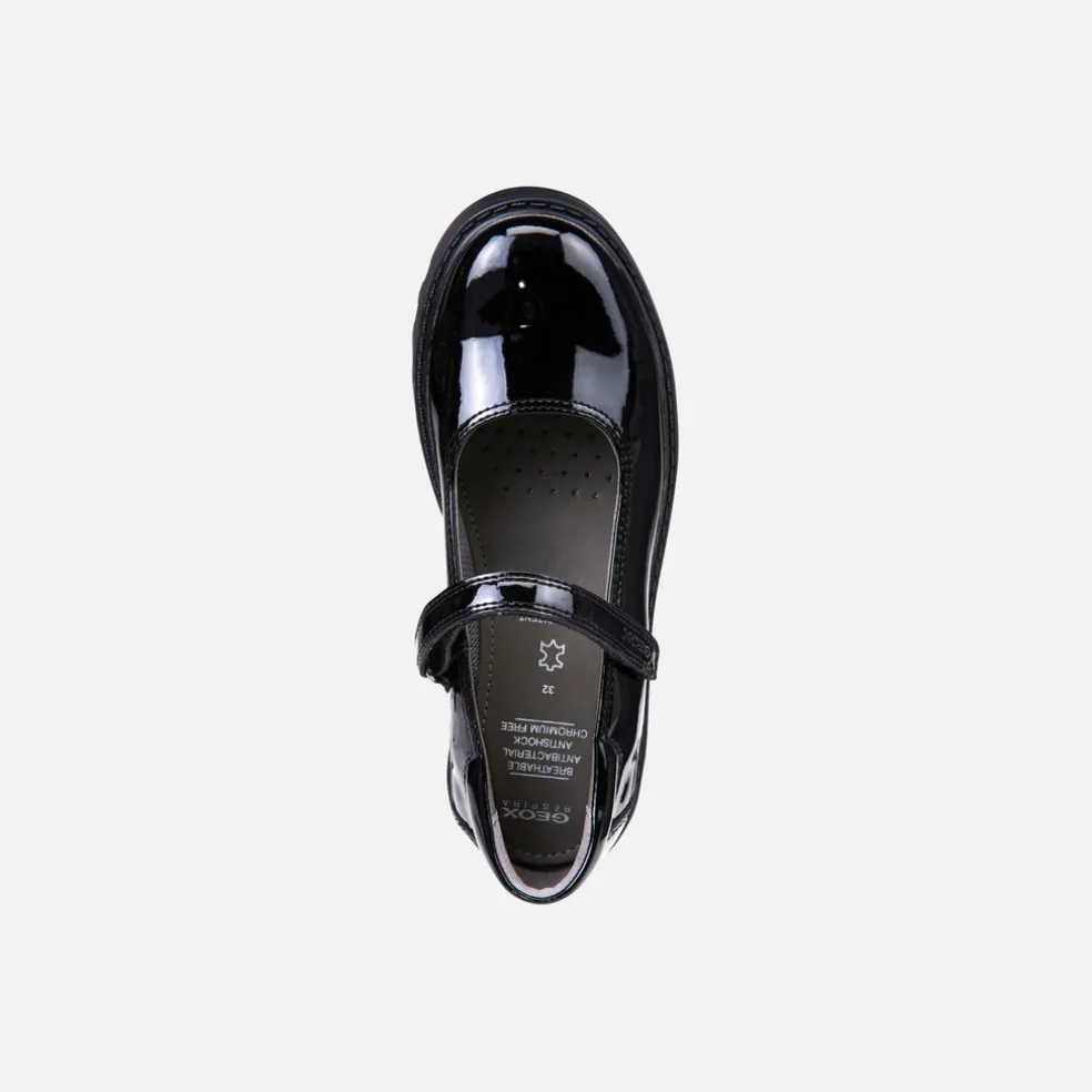 Ballerines pour fille confortables et respirantes, parfaites pour l’école.Inspirées des chaussures de l’uniforme scolaire, les ballerines Casey en matière à effet cuir verni noir sont parfaites pour compléter les looks de tous les jours avec une touche de style.