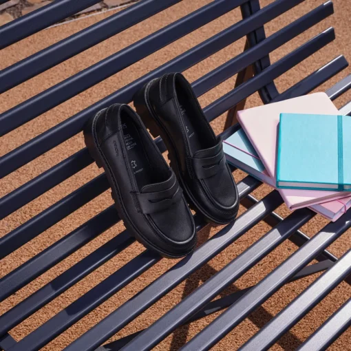 Mocassins pour fille souples et légers, parfaits pour l’école ou les occasions formelles. Réalisées en cuir lisse noir, les Casey arborent des lignes classiques et indémodables, qui font d’elles un modèle incontournable et facile à coordonner avec l’uniforme scolaire. Pratiques et extrêmement confortables, ces chaussures sont une garantie de bien-être du matin jusqu’au soir.