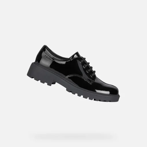 Chaussures pour fille confortables et respirantes, pour l’école ou les looks formels.Réalisées en matière à effet cuir verni et proposées dans une version total black, les Casey sont des chaussures derbies au style formel rehaussées par des détails Oxford, idéales à associer à l’uniforme scolaire ou pour compléter les tenues des grandes occasions.