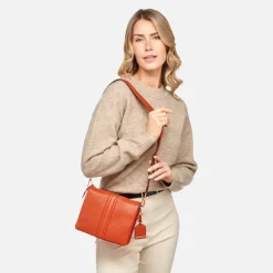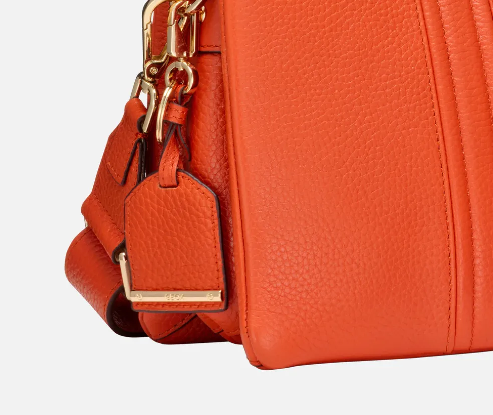 Sac à bandoulière pratique pour femme aux lignes épurées, idéal pour compléter les tenues quotidiennes. Réalisé en cuir foulonné souple, ce modèle est décliné ici dans une variante orange, vive et tendance. Clarissy est un sac facteur contemporain, parfait à la fois pour traverser la ville tous les jours et pour se promener le week-end dans une détente absolue.Modèle se portant en bandoulière ou à l’épaule.Fermeture par bouton aimanté.Bandoulière réglable.Deux poches intérieures dont une à fermeture éclair.Porte-clés amovible avec plaquette en cuir.Accessoires métalliques à finition or.Dimensions : L 22 cm x l 7 cm x H 19 cm.