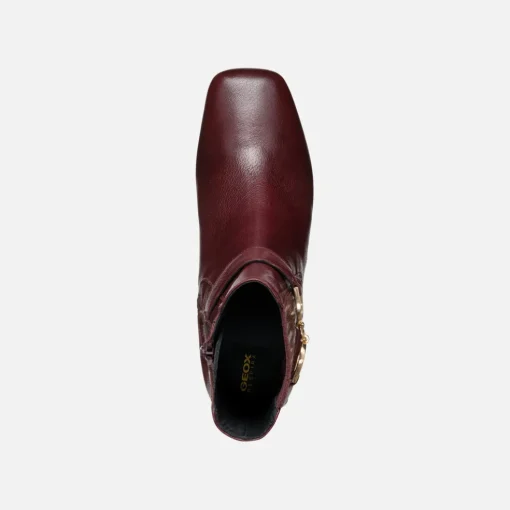 Bottines pour femme dotées d’un confortable talon moyen, féminines et mordantes juste ce qu’il faut. Réalisées en cuir brillant et rehaussées par un détail métallique doré, ces chaussures sont proposées ici dans une version bordeaux qui sort du lot. Pensées pour la ville, les Coronilla sont adaptées du matin jusqu’au soir, aussi bien pour accompagner les looks professionnels que pour les sorties en soirée.