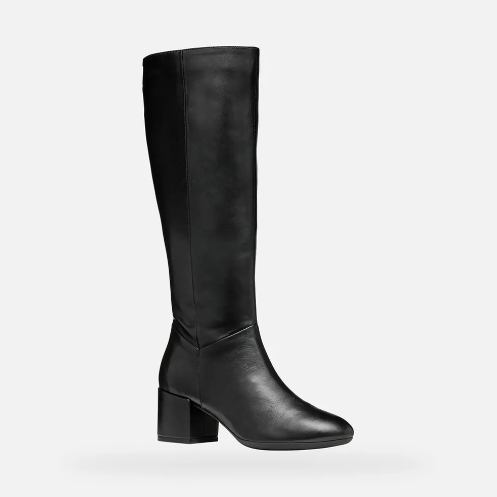 Élégantes bottes hautes pour femme à talon moyen, qui offrent confort et respirabilité. Proposées dans une variante noire, facile à coordonner en différentes occasions, ces chaussures affichent une tige en cuir nappa souple au style classique revisité. Idéales pour la ville, les Eleana complètent avec désinvolture les looks quotidiens : du bureau aux sorties en soirée.