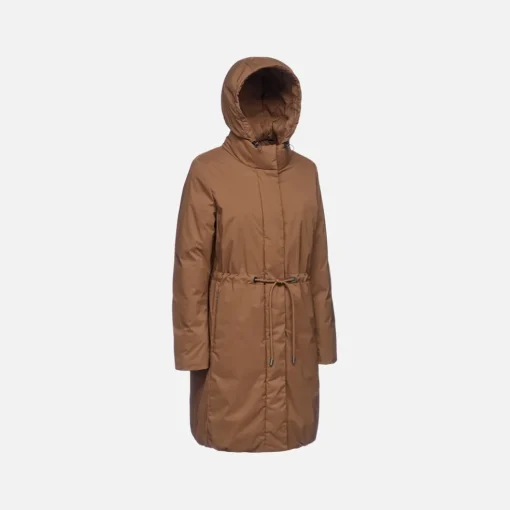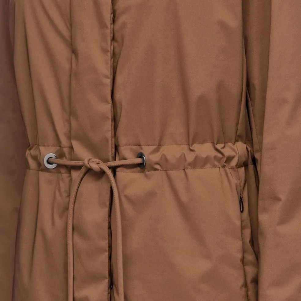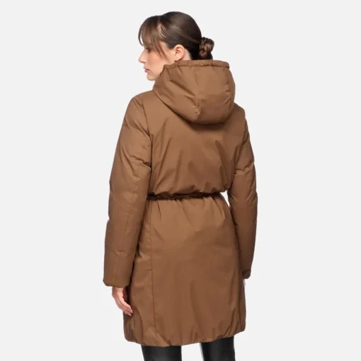 Veste longue pour femme matelassée, moderne et fonctionnelle, au look décontracté chic. Décliné ici dans une irrésistible version marron brûlé, le modèle Eleana est réalisé en polyester doux à l’aspect mat, avec une doublure intérieure matelassée et de couleur contrastée. Doté d’une capuche amovible, de trois poches intérieures pratiques et d’un cordon qui permet de souligner le tour de taille, ce manteau est idéal aussi bien en ville qu’en voyage.