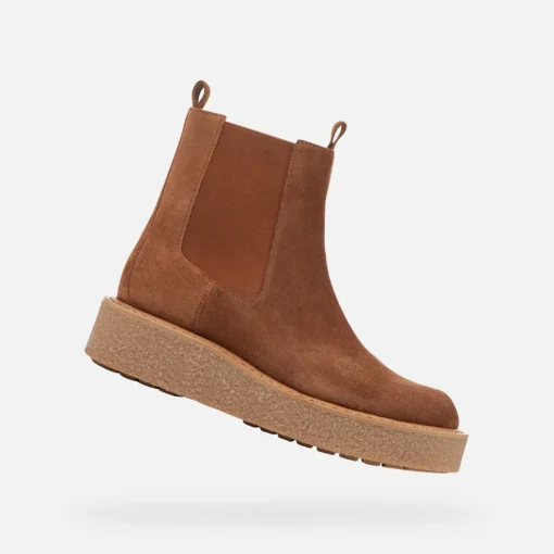 Bottines pour femme à semelle extérieure plate confortables et respirantes, à l’ADN décontracté et moderne. Faciles à enfiler grâce à leur insert élastique pratique, ces chaussures sont réalisées en cuir velours et sont proposées ici dans une tonalité tabac extrêmement tendance. Pensées pour ajouter style et bien-être aux tenues quotidiennes, les Elidea sont également adaptées pour les loisirs : des week-ends en ville aux excursions extra-urbaines.