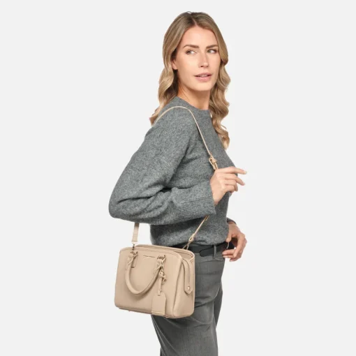 Minisac cabas pour femme au design indémodable, parfait pour la vie en ville. Proposé en matière à effet cuir foulonné, ce modèle est décliné ici dans une sobre tonalité taupe au charme intemporel. Doté d’une anse double et d’une bandoulière réglable pratique, le sac Etheni complète les looks du quotidien, du bureau aux loisirs.Modèle se portant à la main ou en bandoulière.Fermeture éclair en métal.Bandoulière réglable.Anse double.Deux poches intérieures.Porte-clés amovible avec plaquette en cuir.Accessoires métalliques à finition or.Dimensions : L 22 cm x l 11 cm x H 19 cm.