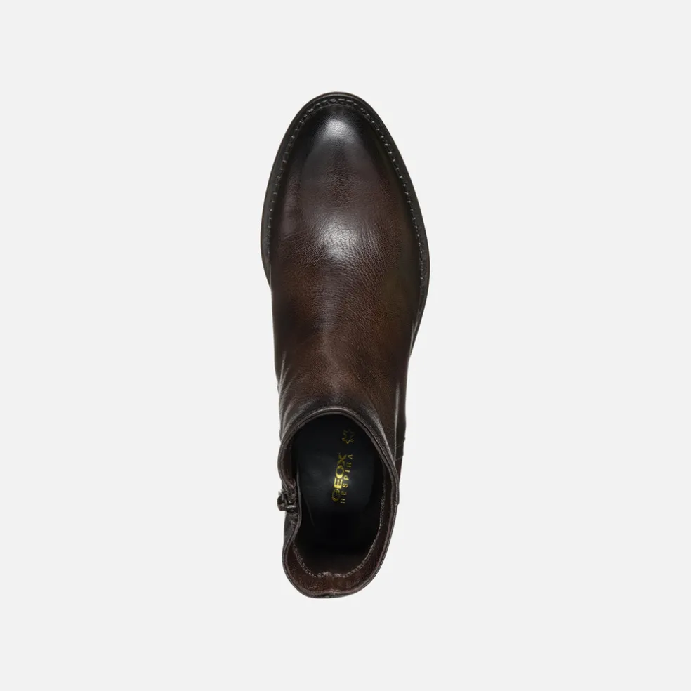 Élégantes bottines pour femme à talon moyen confortable, respirantes et agréables à porter. Réalisées en cuir et proposées ici dans une version brun foncé recherchée, les Farnia s’adaptent à la perfection au style citadin et sont idéales en journée comme en soirée.
