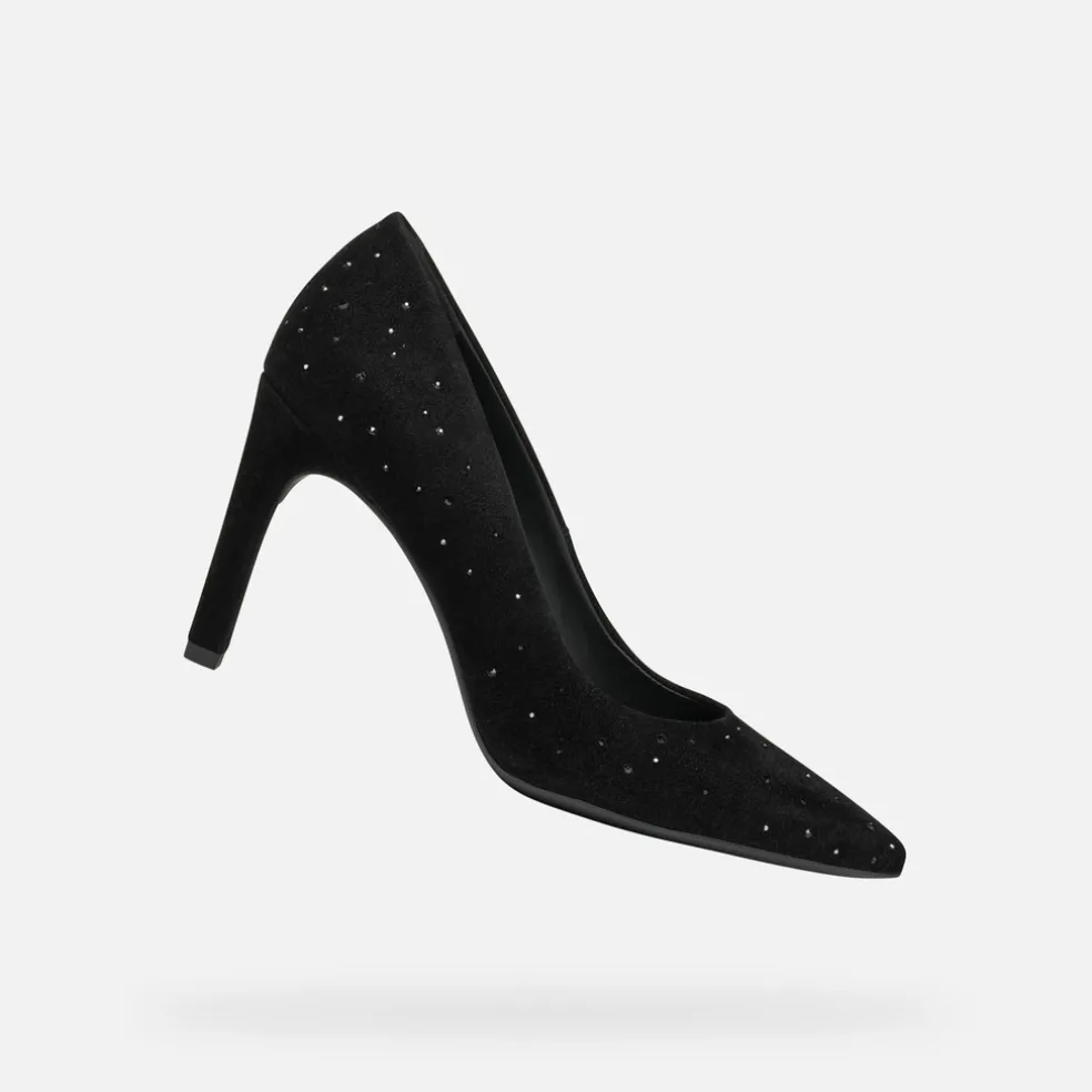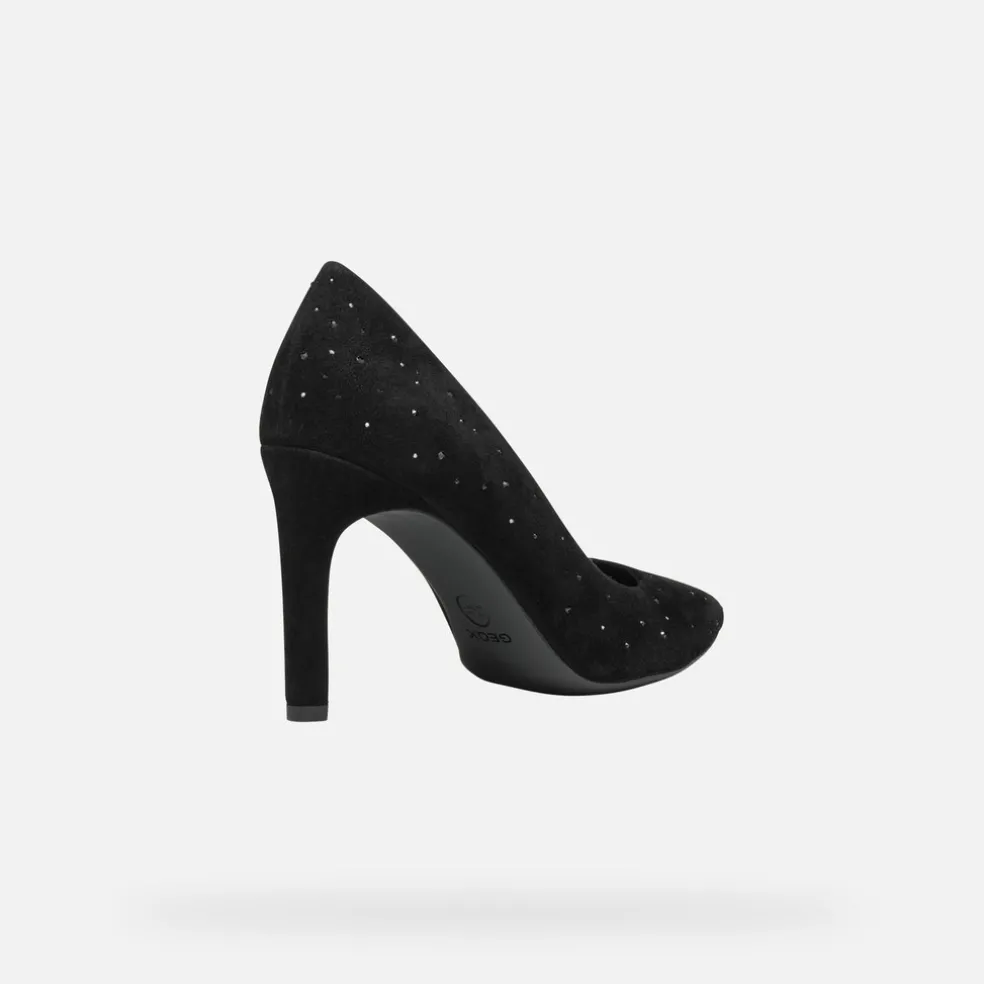 Escarpins pour femme à bout pointu et talon stiletto à l’allure recherchée, qui offrent confort et respirabilité. L’élégante tige en daim souple de ce modèle est proposée ici dans une version noire indémodable rehaussée par des strass lumineux et de petits clous. Urbaines et féminines, les Faviola sont pensées spécialement pour les sorties en soirée et pour accompagner les looks les plus raffinés.