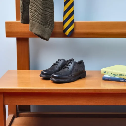 Chaussures formelles pour garçon, pratiques et intemporelles.Idéales pour l’école, les Federico sont des chaussures en cuir lisse noir confortables et respirantes, étudiées pour répondre aux exigences d’un usage quotidien. La silhouette monochrome discrète est polyvalente et facile à coordonner.