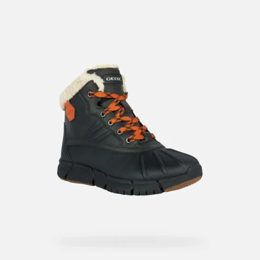 Bottines pour garçon idéales pour les activités de plein air, même par mauvais temps. Proposées en noir avec des détails orange, ces chaussures arborent une tige au look moderne et sportif d’inspiration outdoor, réalisée en matière à effet cuir ciré et matière à effet cuir. Chaudes et imperméables, les Flexyper ABX présentent des détails en fausse fourrure et une semelle extérieure adhérente pour garantir confort et sécurité dans toutes les aventures quotidiennes.