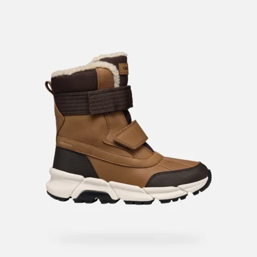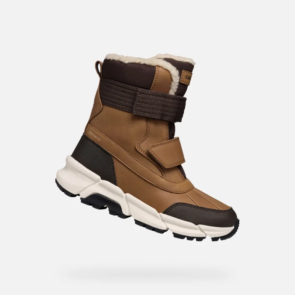 Bottines pour garçon chaudes, imperméables et amorties, d’inspiration outdoor. Proposées ici en tabac et brun foncé, les Flexyper Plus ABX affichent une semelle extérieure en caoutchouc parfaitement adhérente, qui garantit une marche sûre et confortable même sur les surfaces mouillées. Réalisées en matière à effet cuir ciré et nylon, ces chaussures assurent une protection maximale contre la pluie et le froid et sont dotées d’une fermeture à double scratch pratique.
