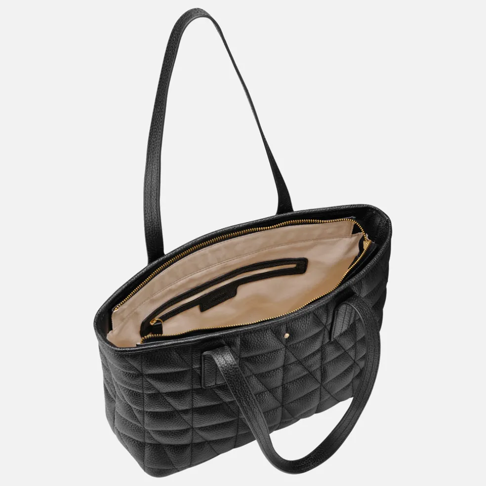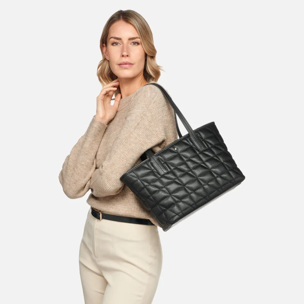 Sac cabas pour femme pratique et spacieux, idéal pour compléter les associations quotidiennes. Réalisé en cuir foulonné à effet matelassé, ce modèle est décliné ici dans une tonalité noire au look résolu. Doté d’une fermeture éclair et d’une anse double, le sac Gardren M est idéal pour les femmes qui arpentent la ville entre un rendez-vous et un autre.Modèle se portant à l’épaule.Fermeture éclair.Deux poches intérieures.Accessoires métalliques à finition or.Dimensions : L 30,5 cm x l 13 cm x H 23,5 cm.