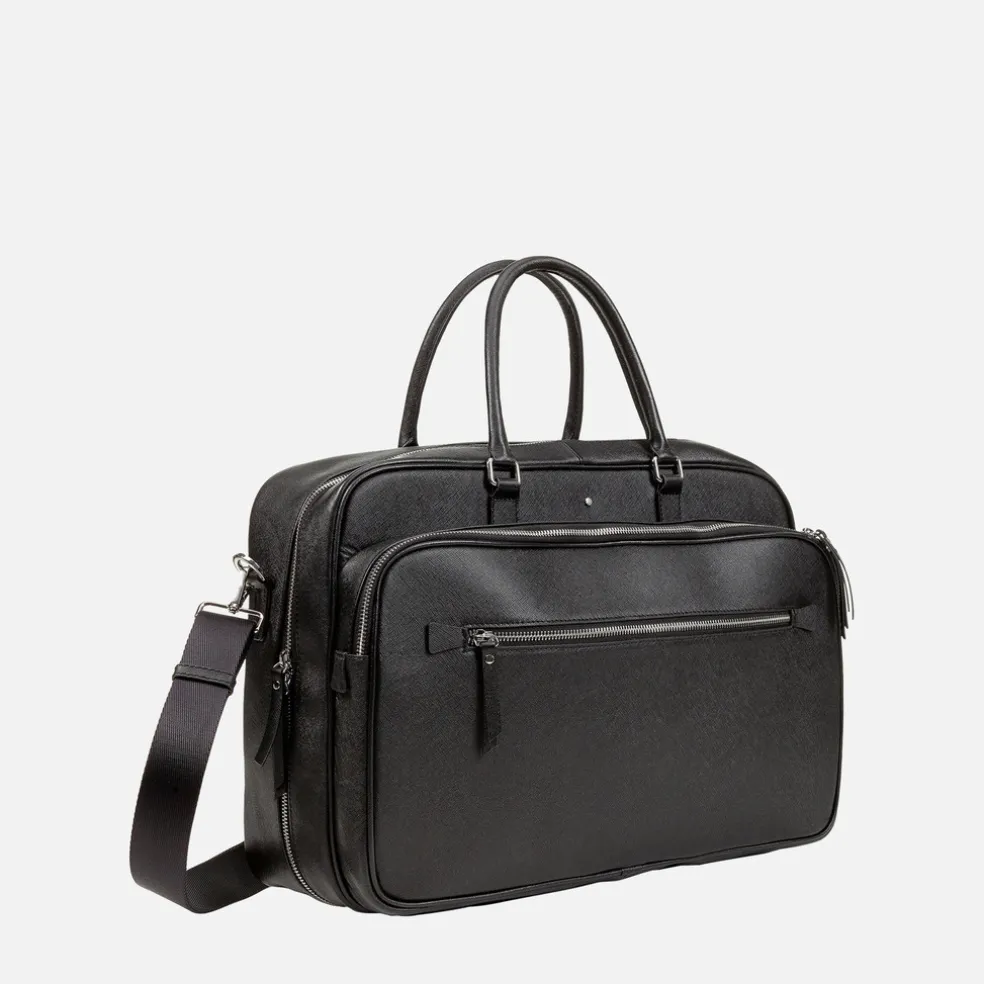Sac pour homme classique et fonctionnel, idéal pour compléter les looks professionnels. Indispensable dans la vie de tous les jours, ce modèle est réalisé en cuir à imprimé saffiano et est proposé ici dans une version noire polyvalente et essentielle. Conçu en pensant également aux voyages, le sac Giourneyer protège l’ordinateur portable et est doté de compartiments et d’accessoires intérieurs permettant d’organiser et d’emporter avec soi tout ce dont on a besoin.Fermeture éclair en métal.Bandoulière amovible.Anse double.Deux poches intérieures avec fermeture éclair à double curseur.Deux poches intérieures.Élastique pour bloquer les vêtements.Passant arrière pour la fixation à une valise à roulette.Dimensions : L 44 cm x H 30,5 cm x l 14 cm.