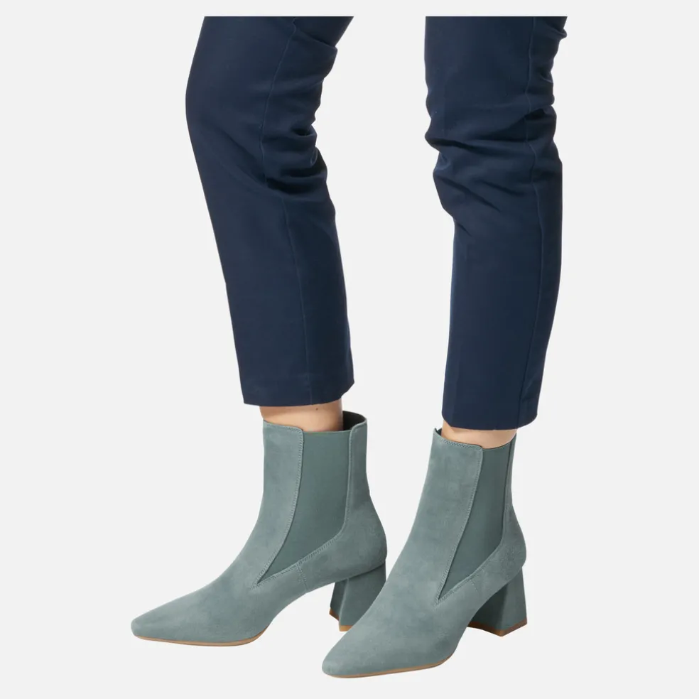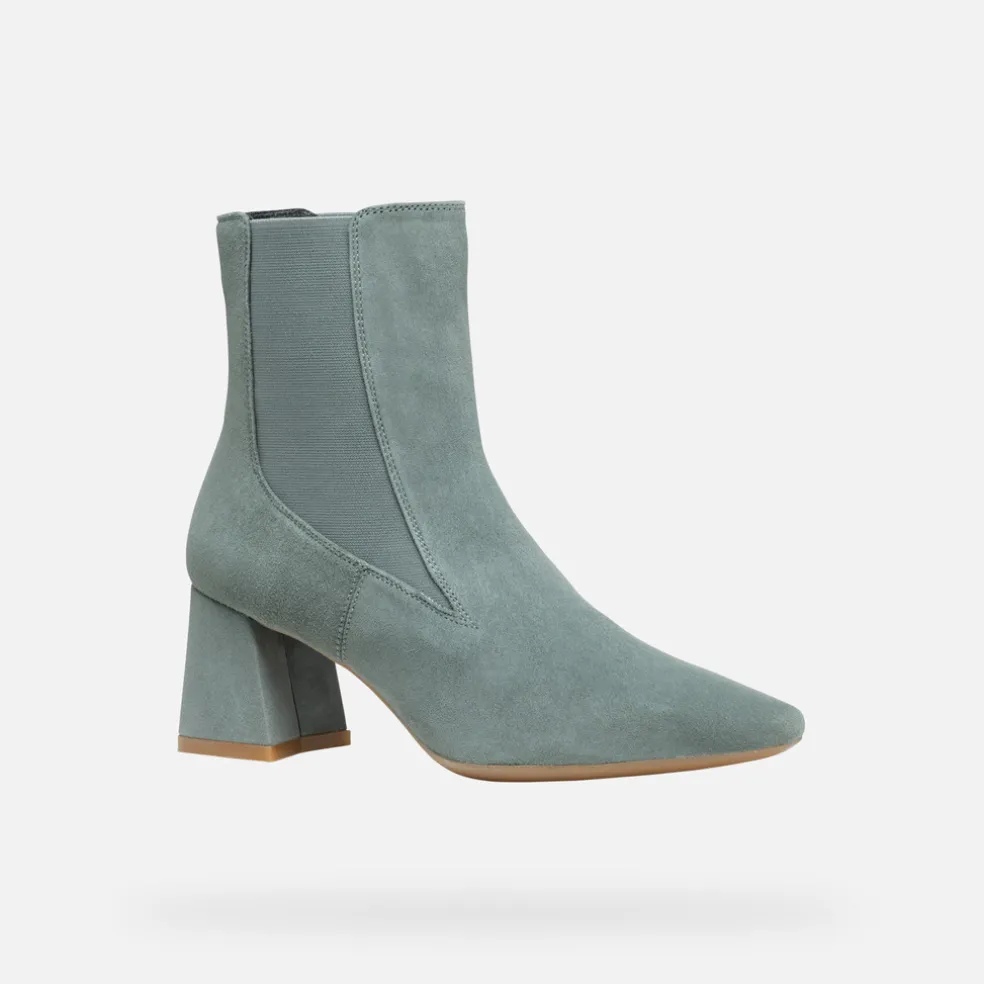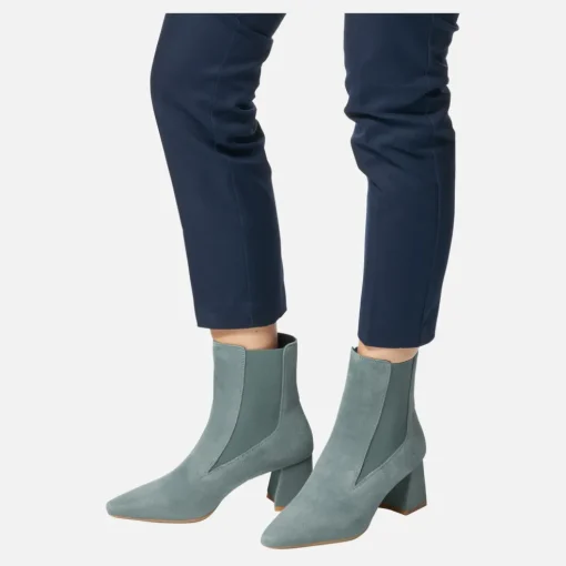Bottines pour femme à bout pointu et confortable talon moyen, légères et respirantes. Combinaison idéale de style et de bien-être, ces chaussures sont réalisées en daim souple et sont proposées ici dans une variante vert sauge sophistiquée. Féminines et raffinées grâce à leurs lignes fuselées, les Giselda sont adaptées à la fois aux looks professionnels et aux associations les plus élégantes.