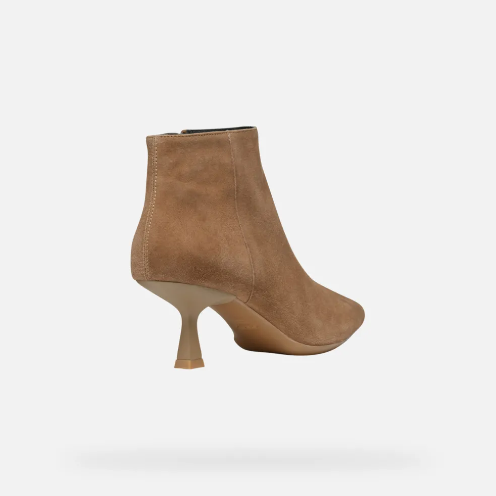 Bottines pour femme à bout pointu et talon fin de faible hauteur au style moderne et élégant. Réalisée en daim souple pour un look recherché, la tige de ce modèle est déclinée ici dans une variante brun argile raffinée. Confortables et respirantes, les Gilselda R complètent avec une touche tendance les tenues du bureau ou des sorties en soirée, en garantissant un bien-être maximal.