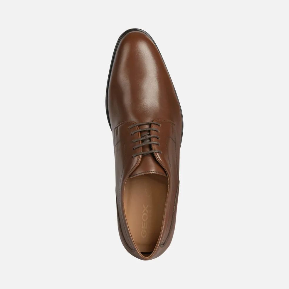Chaussures formelles pour homme aux lignes fuselées, respirantes et légères.Réalisées en cuir lisse couleur cognac et caractérisées par des niveaux supérieurs d’amorti et de légèreté, les Iacopo sont des chaussures à la classique forme fuselée qui sublime le look des occasions importantes avec une touche de style impeccable.