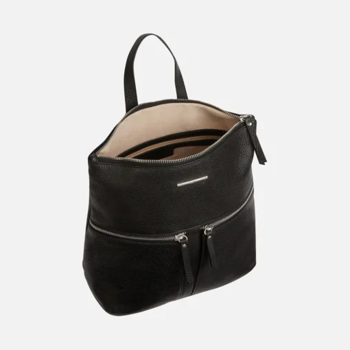 Petit sac à dos femme, pratique, parfait pour tous les jours et pour la vie en ville. Irenie est un petit sac à dos fonctionnel, désinvolte et ample qui séduit par son dynamisme au style décontracté et contemporain. Décliné dans une teinte noire polyvalente, il est fabriqué en cuir souple.Fermeture éclair. Anses en cuir réglables avec boucles.À l’extérieur : double poche sur le devant et poche arrière à fermeture éclair. À l’intérieur : grande poche à fermeture éclair et deux poches ouvertes.Dimensions : L 40 cm x H 32 cm x W 15 cm
