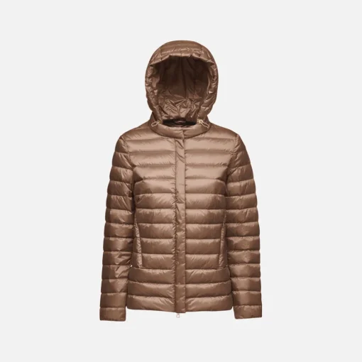 Doudoune courte pour femme matelassée au design tendance et féminin, à capuche amovible et coupe évasée. Proposé ici dans une irrésistible version marron brûlé, ce modèle est parfait pour compléter avec une touche moderne les looks décontractés du quotidien. Réalisé en nylon recyclé matelassé, Jaysen est un blouson chaud mais ultraléger, idéal pour la mi-saison.