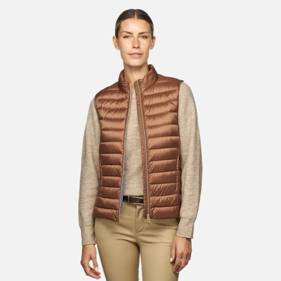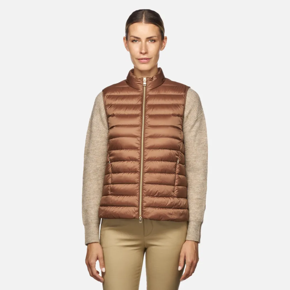 Doudoune sans manches pour femme chaude mais ultralégère, au style quotidien décontracté et à la coupe féminine. Réalisé en nylon recyclé 20 deniers, déperlant et coupe-vent, ce modèle est proposé ici dans une version marron brûlé recherchée. Quotidien et fonctionnel, le modèle Jaysen est idéal pour le début de saison et les journées où le temps est incertain.