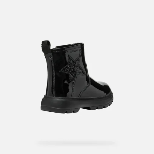 Bottines slip-on pour petite fille dotées d’une confortable semelle extérieure chunky. Avec leur tige à la mode présentée ici en noir avec une application latérale brillante en forme d’étoile, les Kiddartah sont parfaites aussi bien pour accompagner les tenues décontractées que pour les occasions spéciales. Réalisées en cuir verni et tissu à paillettes, ces chaussures sont confortables, légères et respirantes.
