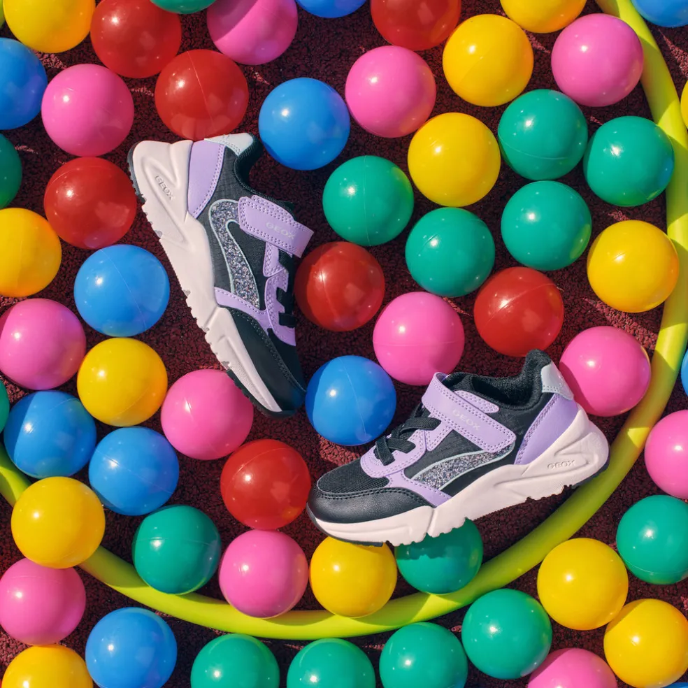 Sneakers basses pour fille au design d’inspiration running, légères et amorties. Déclinées ici en noir et lilas avec des applications latérales scintillantes, ces chaussures sont un modèle parfait pour aller à l’école ou pour accompagner les tenues sportives de tous les jours. Réalisées en matière à effet cuir et nylon, les Loftus sont souples, respirantes et faciles à enfiler.
