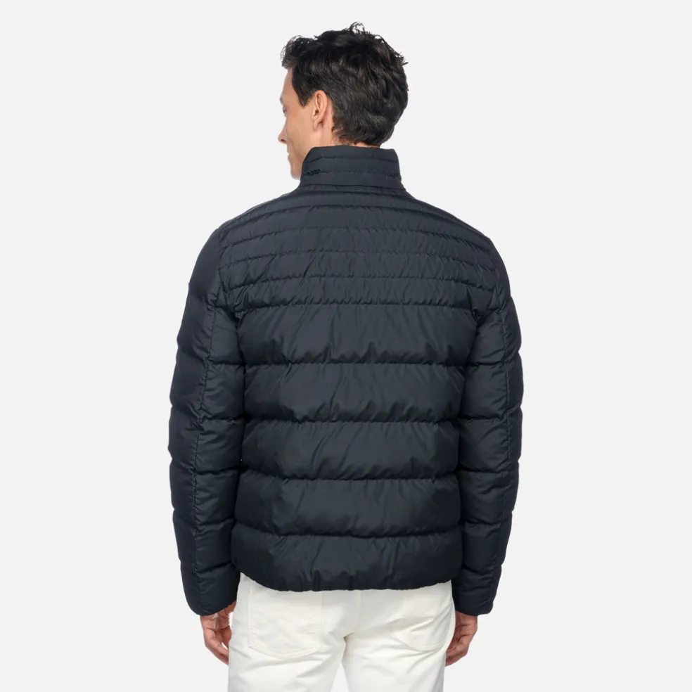 Blouson court pour homme à la coupe slim et au style décontracté et contemporain, doté d’un rembourrage en ouate recyclée EcologicWARM. Dans cette version bleu nuit raffinée, le modèle Magnete est adapté pour accompagner aussi bien les looks quotidiens que les tenues des moments de loisirs. Proposé en taffetas de polyester recyclé à l’aspect mat, il s’agit d’un manteau polyvalent et fonctionnel, car il est déperlant et coupe-vent.