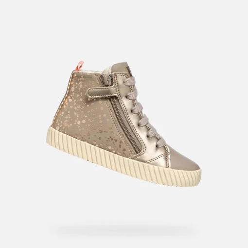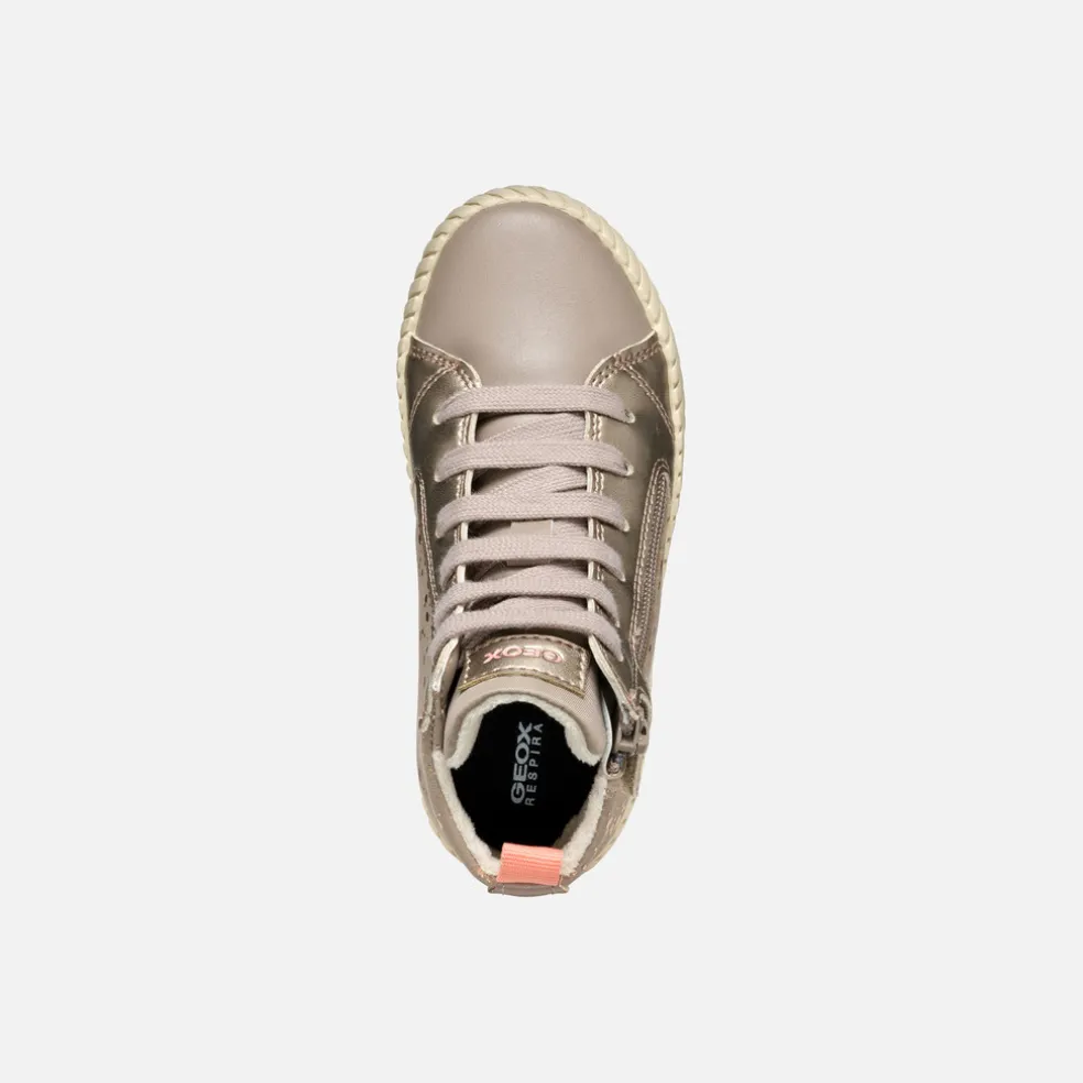 Sneakers semi-montantes pour fille féminines et respirantes, dotées d’une fermeture éclair latérale pratique permettant un enfilage rapide. Idéales pour illuminer les looks décontractés de votre enfant, à l’école et pendant ses loisirs, ces chaussures sont proposées ici en beige foncé avec des micropois sur la tige. Réalisées en matière à effet cuir velours et matière à effet cuir nacré, ces chaussures présentent une fermeture éclair latérale pratique permettant un enfilage rapide.