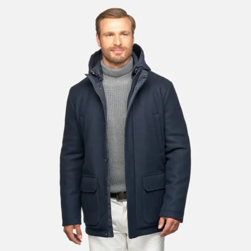 Manteau long pour homme légèrement matelassé au style urbain, au design essentiel et à l’ADN quotidien. Proposé ici dans une indémodable tonalité bleu nuit, le modèle Monreale est doté d’une capuche amovible pratique en nylon. Réalisé en tissu à effet laine, ce modèle est un manteau coupe-vent parfait pour le début de saison.