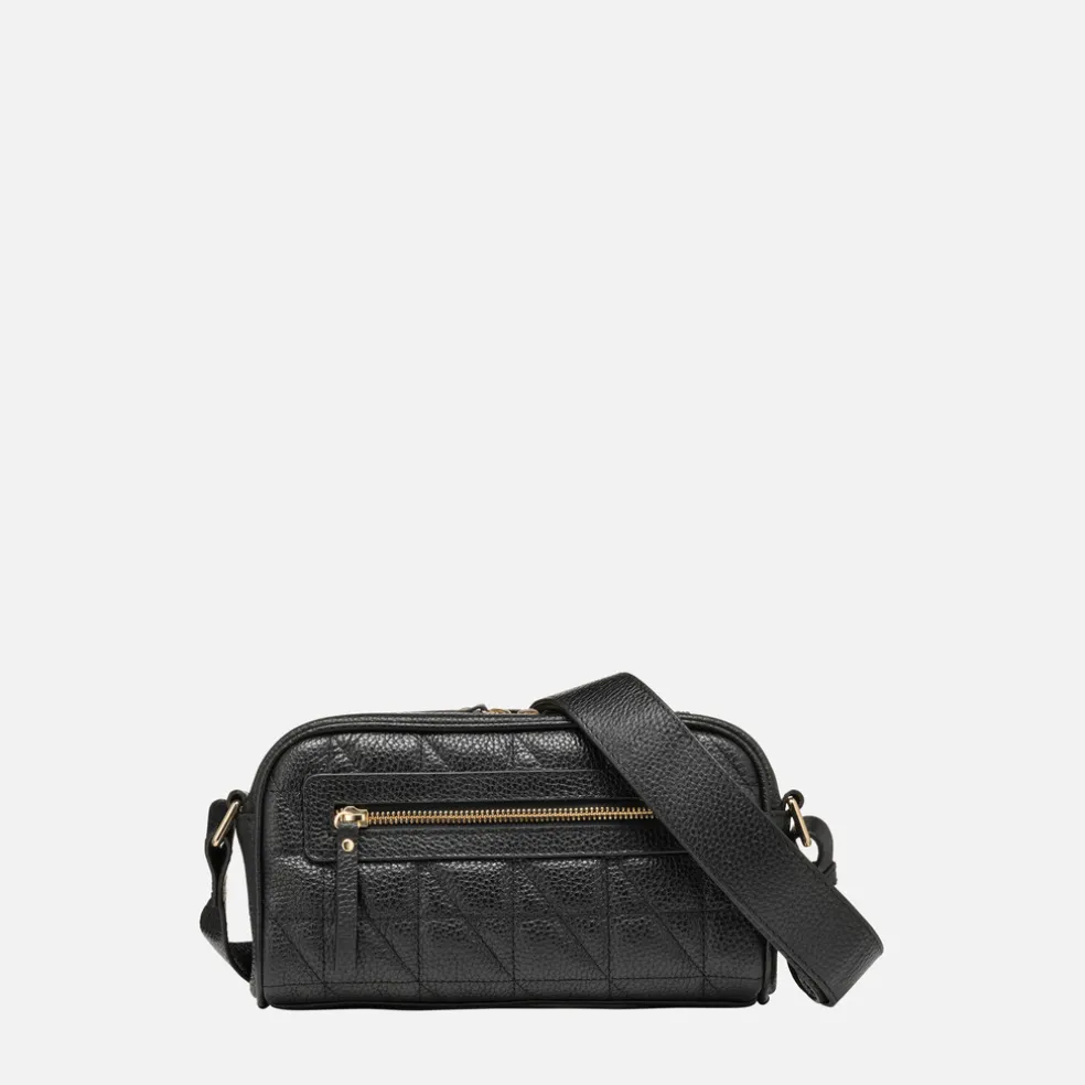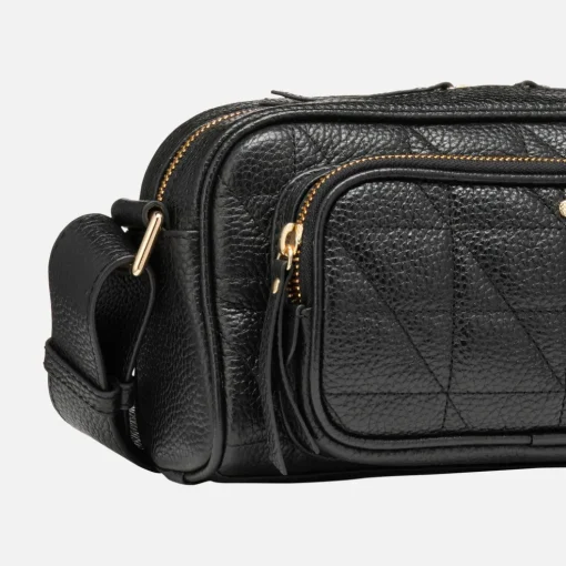 Sac à bandoulière pour femme pratique à l’ADN citadin et au style contemporain. Proposé en cuir foulonné souple à finition matelassée et décliné ici dans une indémodable version noire, ce modèle présente une poche à fermeture éclair sur le devant. Fonctionnel et féminin, le sac Narcisia est idéal pour compléter les looks décontractés de tous les jours.Modèle se portant en bandoulière ou à l’épaule.Poche avant avec fermeture éclair en métal.Deux poches intérieures.Poche arrière.Bandoulière réglable.Accessoires métalliques à finition or.Dimensions : L 24 cm x l 4 cm x H 15 cm.