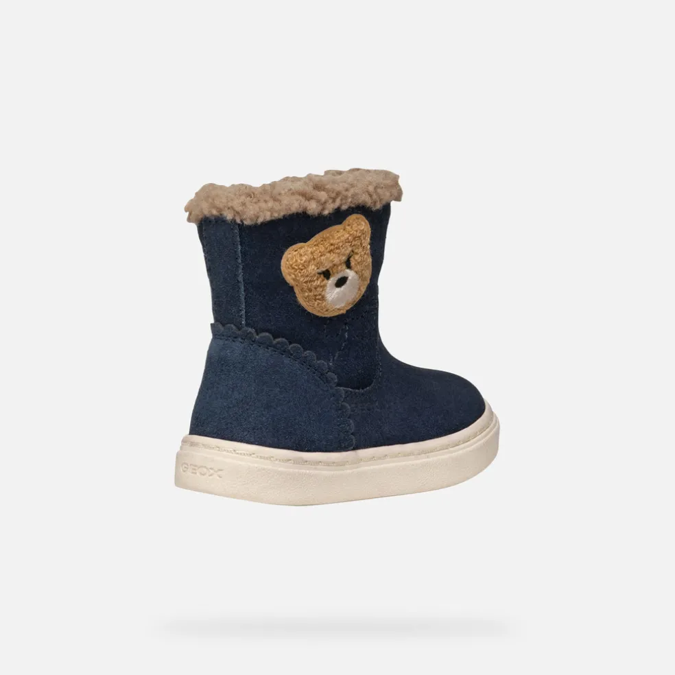 Bottines pour petite fille romantiques et féminines, parfaites pour rehausser les tenues décontractées quotidiennes de votre enfant. Dans cette version bleu marine, les Nashik arborent des lignes minimalistes et une tendre application en forme d’ourson sur la tige. Réalisées en cuir velours souple avec des détails en fausse fourrure, ces chaussures sont chaudes, respirantes et garantissent un confort maximal.