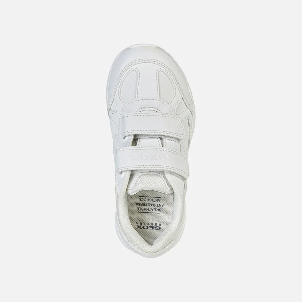 Baskets basses pour garçon d’inspiration rétro, à associer à l’uniforme scolaire.Confortables et respirantes, les Pavel sont des baskets en matière à effet cuir foulonné et durabuck imprimé proposées ici dans une version all-white indémodable. Le look de ce modèle, parfait pour tous les jours, est caractérisé par une évocation du style running et par l’attention apportée au confort et au bien-être qui distingue la marque depuis toujours.