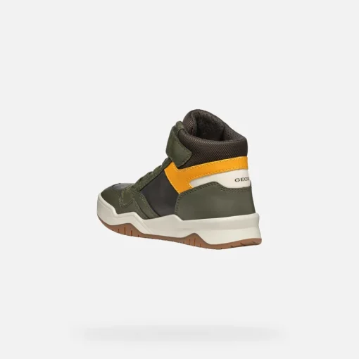 Sneakers semi-montantes pour garçon au design tendance d’inspiration basket. Proposées dans un mélange de vert foncé et jaune ocre, ces chaussures plaisent grâce à leur look irrésistible qui complète avec désinvolture toutes les tenues sportives décontractées. Légères, respirantes et dotées d’un scratch et de lacets pour un enfilage pratique et un chaussant confortable, Perth sont réalisées en matière à effet cuir ciré et nylon.