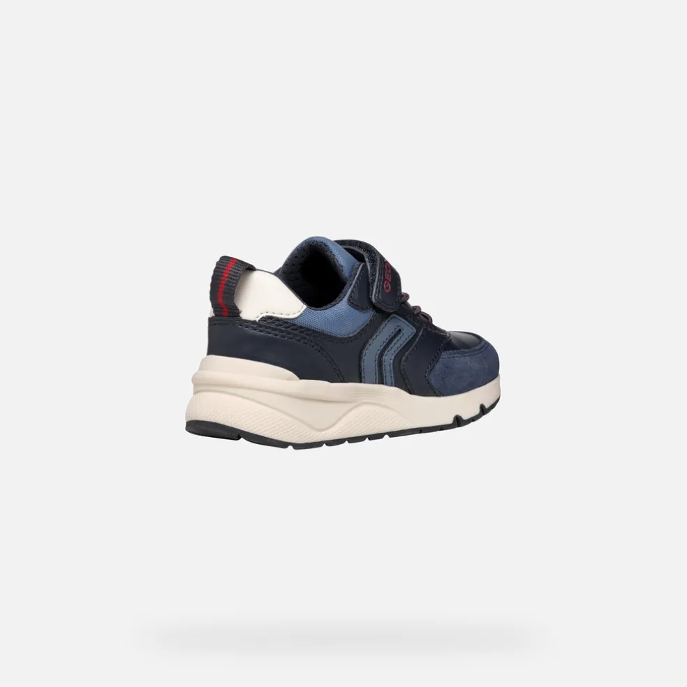 Sneakers basses pour garçon d’inspiration running au charme rétro. Amorties et affichant un impeccable style sportif, les Rooner sont proposées dans une combinaison de bleu marine et rouge foncé. Réalisées en matière à effet cuir et nylon, ces chaussures complètent les tenues quotidiennes, à l’école et pendant le week-end.