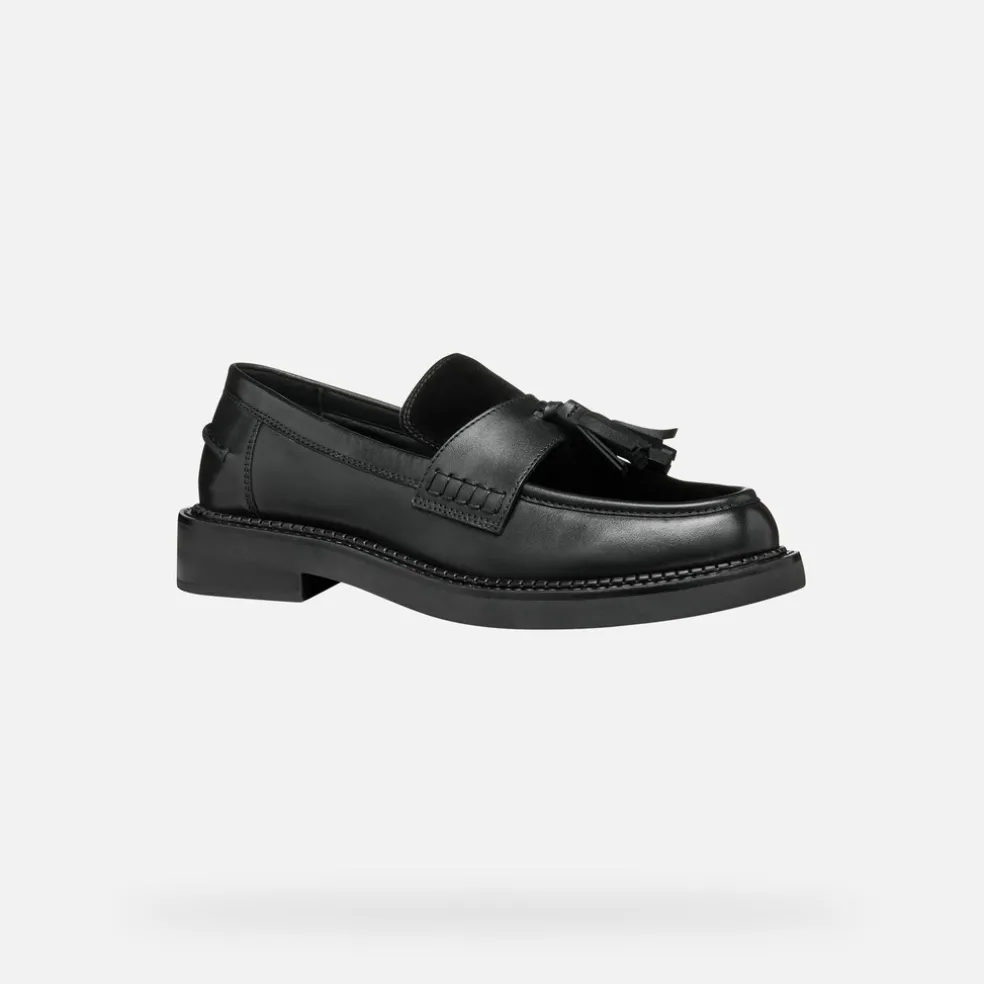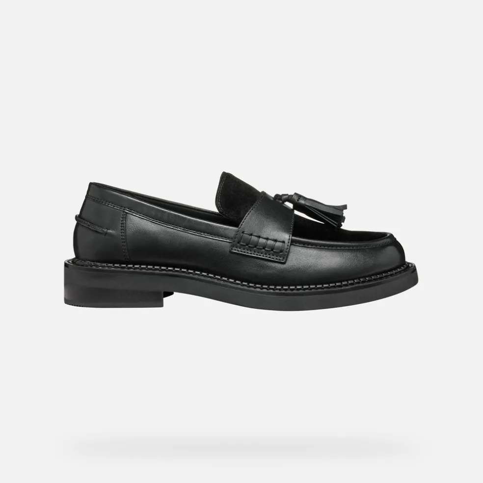 Mocassins pour femme à la saveur recherchée et aux lignes modernes, qui offrent confort et respirabilité. Proposées dans une indémodable version noire, les Serilda affichent une tige réalisée en cuir lisse avec des détails en velours, rehaussée par des pampilles. Idéales pour la ville, ces chaussures complètent les tenues quotidiennes plus ou moins formelles, pour un look toujours impeccable.