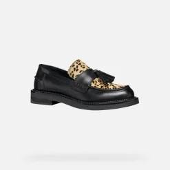 Mocassins pour femme à pampilles à la saveur recherchée et aux lignes modernes, qui offrent confort et respirabilité. Proposées dans une version particulière qui associe les coloris noir et cognac, ces chaussures possèdent une tige en cuir lisse rehaussée par un insert à effet poulain à imprimé animalier. Idéales pour la ville, les Serilda donnent une allure mordante aux tenues citadines de tous les jours.
