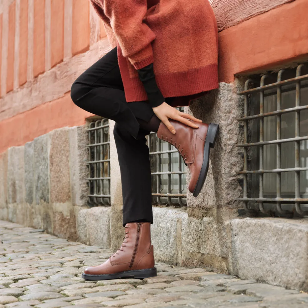 Bottines à lacets pour femme confortables et respirantes, au charme urbain contemporain. Proposées en cuir lisse, ces chaussures sont présentées ici dans une tonalité marron clair recherchée, indispensable dans la garde-robe de saison. Les Serilda se prêtent à un nombre infini de combinaisons de looks et sont parfaites pour affronter avec mordant les journées frénétiques, sans renoncer au bien-être.