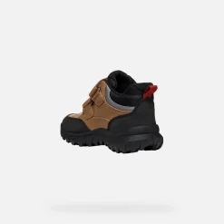 Chaussures pour garçon au look hybride, qui assurent une protection maximale même en cas de mauvais temps. Proposées ici dans un mélange de cognac et noir, les Simbyos ABX sont amorties et confortables. Réalisées en matière à effet cuir ciré et nylon, ces chaussures sont imperméables et faciles à ajuster, idéales pour les explorations en plein air.