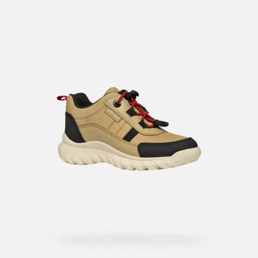 Chaussures junior au look hybride, qui assurent une protection maximale même en cas de mauvais temps. Proposées ici dans un mélange de beige et noir, les Simbyos ABX sont amorties et confortables. Réalisées en nylon et matière à effet cuir, ces chaussures sont imperméables, légères et respirantes, idéales pour les explorations en plein air.