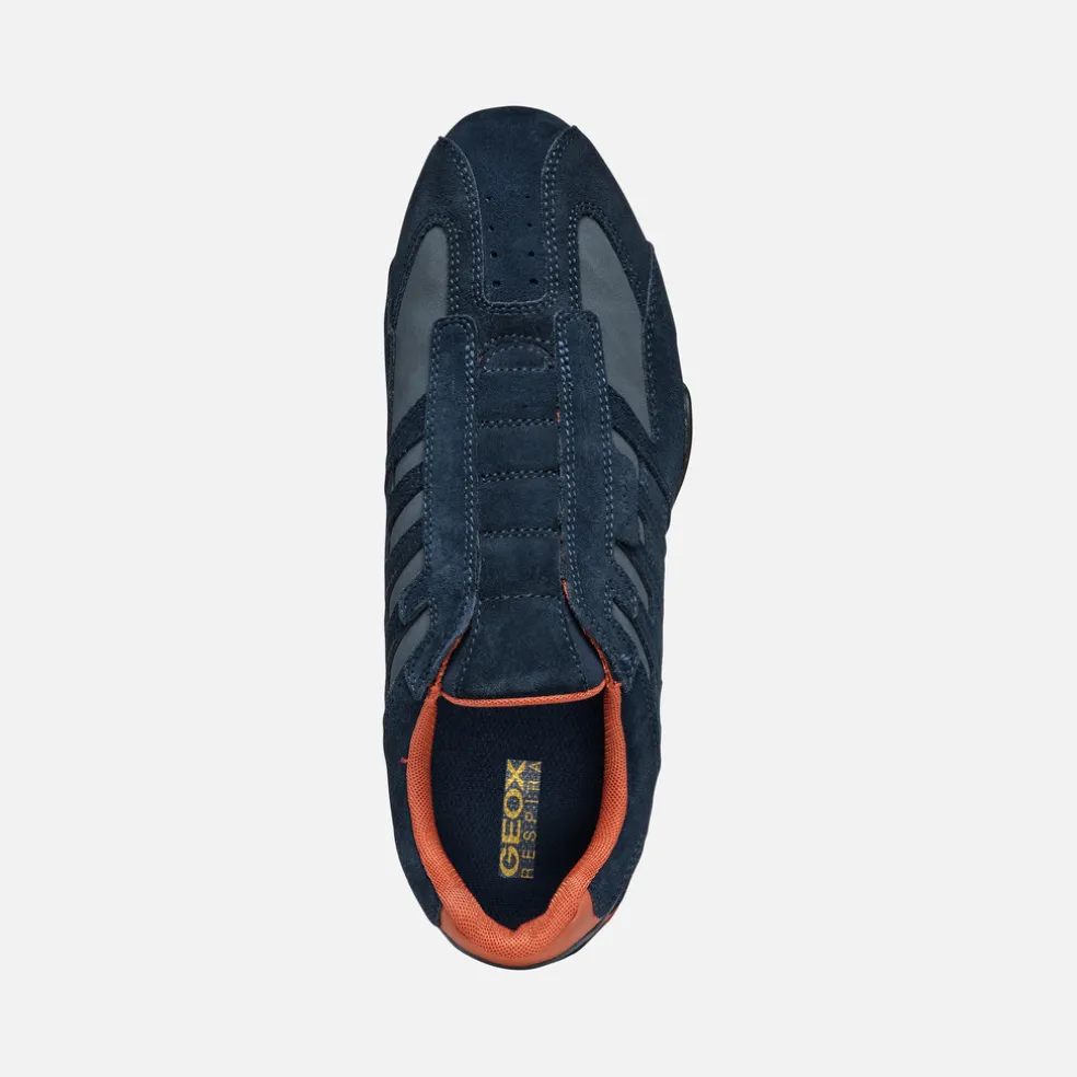 Sneakers légères pour homme au style sportif et dynamique, parfaites pour les activités de loisirs. La tige en cuir velours et matière à effet nubuck de ce modèle joue avec les contrastes et est déclinée ici dans une vive version bleu marine. Pensées pour compléter les looks informels citadins avec une note active, les Snake garantissent confort et respirabilité.