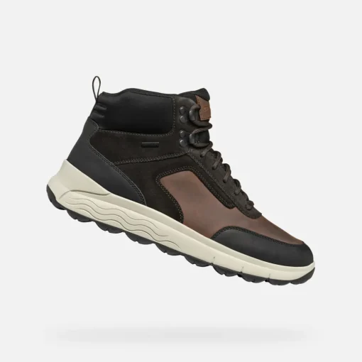 Bottines pour homme imperméables, qui allient allure sportive et style décontracté contemporain. Déclinées ici dans une tonalité brun foncé raffinée, ces chaussures affichent une tige réalisée en cuir pull-up et cuir velours et rehaussée par des détails randonnée. Idéales à la fois en ville et pour les loisirs, les Spherica™ 4×4 ABX garantissent des pieds toujours au sec et un excellent amorti, même sous la pluie battante.