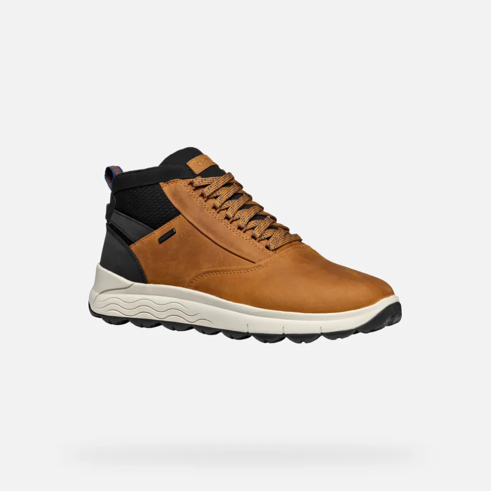 Bottines pour homme imperméables, qui allient allure sportive et style décontracté contemporain. Déclinées ici dans une originale tonalité cognac, ces chaussures affichent une tige réalisée en cuir pull-up avec des détails en tissu à effet maille. Idéales à la fois en ville et pour les loisirs, les Spherica™ 4×4 ABX garantissent dynamisme et amorti, même sous la pluie battante.