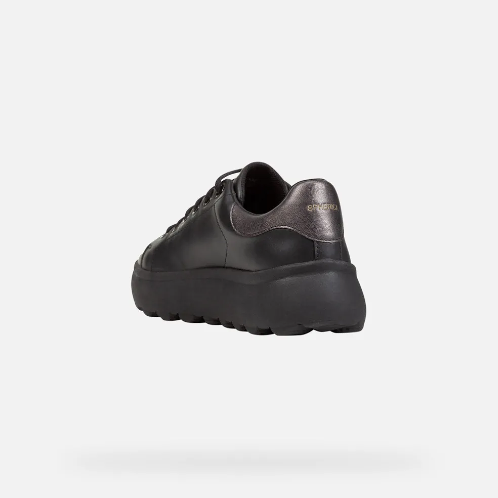 Sneakers pour femme respirantes et ultra-amorties au design emblématique. Réalisées en cuir nappa souple et matière à effet cuir nacré, ces chaussures sont déclinées ici dans une variante au look résolu qui associe les coloris noir et canon de fusil. Les Spherica™ EC4.1 rehaussent les tenues décontractées chics citadines, en garantissant une marche toujours légère.