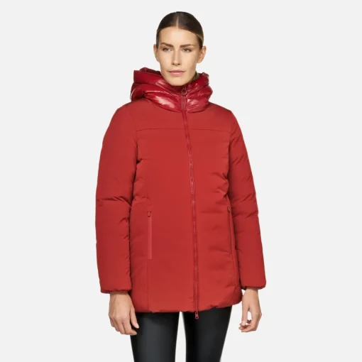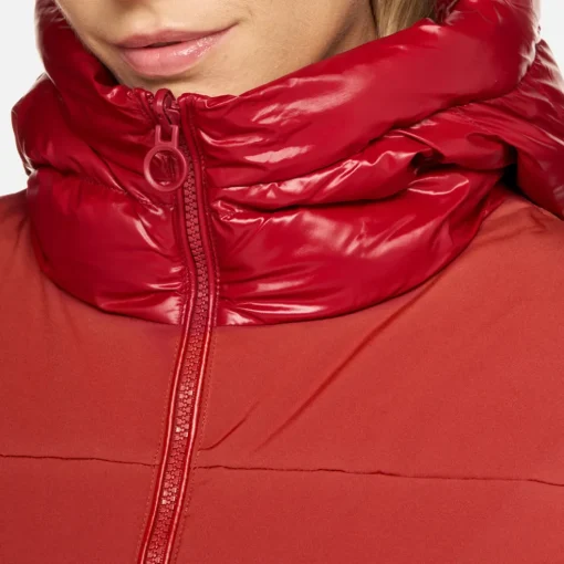 Veste pour femme réversible à la saveur contemporaine, idéale même pour les mois les plus froids. Proposé dans une originale version rouge foncé, ce modèle présente une face extérieure lisse en tissu taffetas et une face intérieure et une capuche de protection en nylon brillant laqué. Chaud et respirant, le modèle Spherica™ est un vêtement respirant parfait pour la ville, qui assure un confort maximal même en cas de mauvais temps.