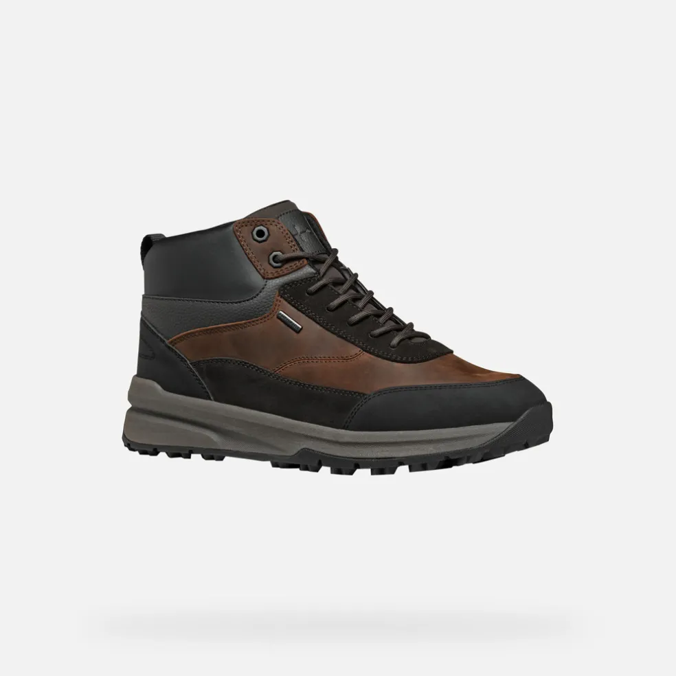 Sneakers semi-montantes pour homme imperméables, caractérisées par une semelle extérieure performante qui assure une excellente adhérence. Protectrices et respirantes, ces chaussures sont réalisées en cuir pull-up et cuir velours et sont proposées dans une variante brun foncé résolue et recherchée. Inspirées de l’univers outdoor, les Sterratrail + Grip ABX sont adaptées à la fois en ville et pour les excursions extra-urbaines du week-end.