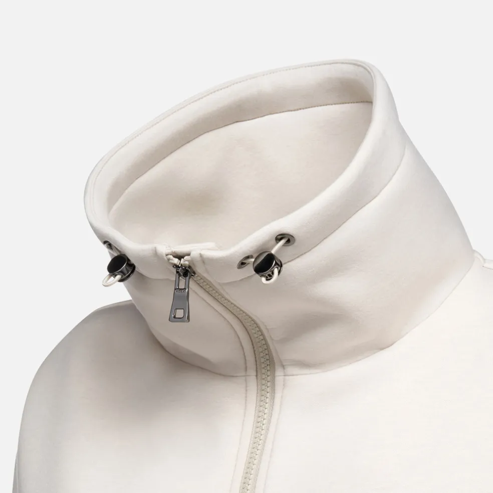Sweat-shirt pour femme à la saveur active contemporaine, doté d’une fermeture éclair pratique sur le devant. Décliné ici en gris clair, ce modèle est doté de cordons permettant d’ajuster le col et le tour de taille. Réalisé en softshell à l’aspect mat, ce modèle est un gage de confort tout au long de la journée.