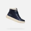 Sneakers semi-montantes pour fille chaudes et imperméables, à l’inimitable charme nordique. Dans cette variante bleu marine foncé, les Theleven ABX sont idéales pour affronter les températures les plus froides et les jours de pluie sans renoncer au style. La tige de ce modèle en cuir velours brillant et matière à effet cuir à la saveur décontractée est ornée de détails en fausse fourrure.